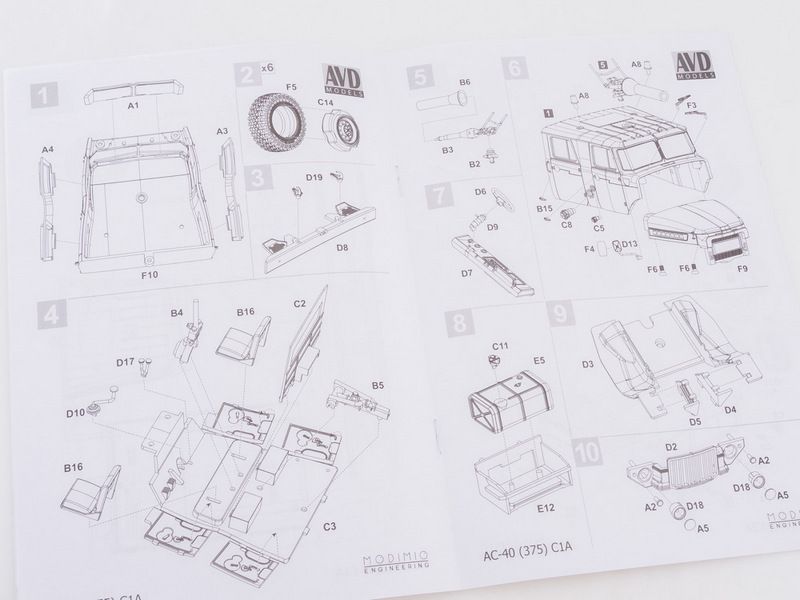 Комплект пластиковых и металлических деталей для сборки модели Пожарная цистерна АЦ-40(375)Ц1А в масштабе 1/43.Спецификация: