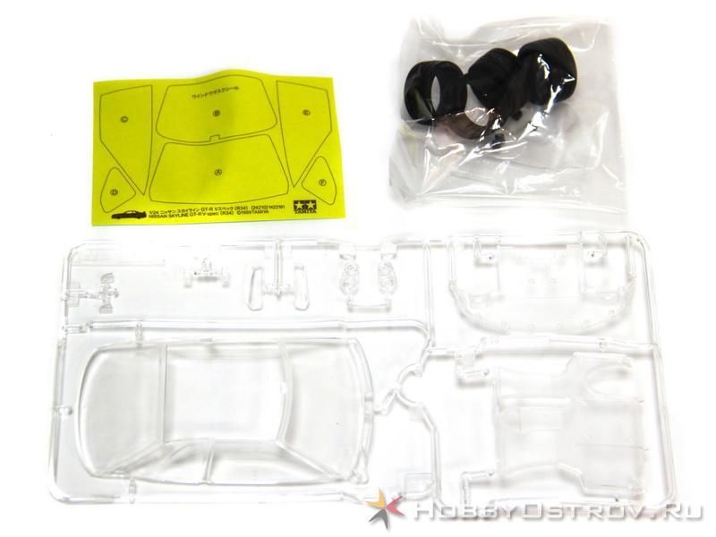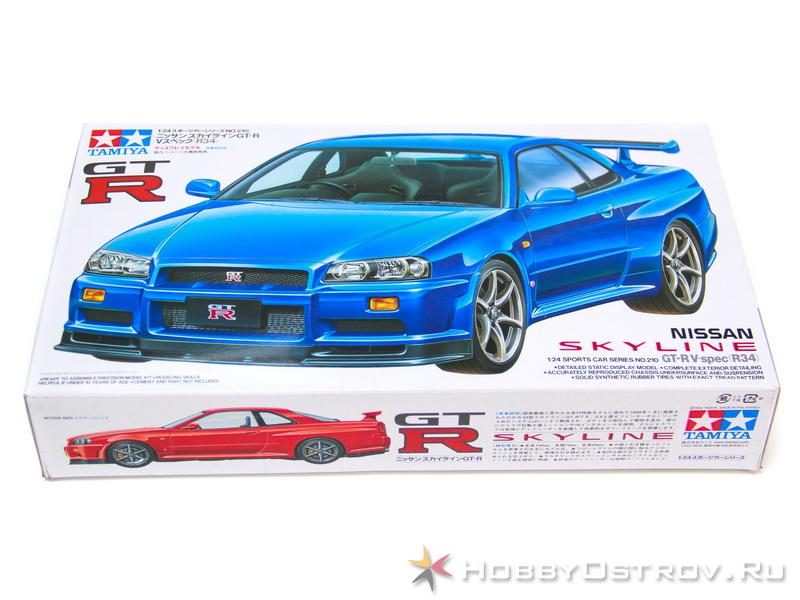 Склеиваемая модель гоночного автомобиля Nissan Skyline GT-R V-spec (R34) в масштабе 1/24.