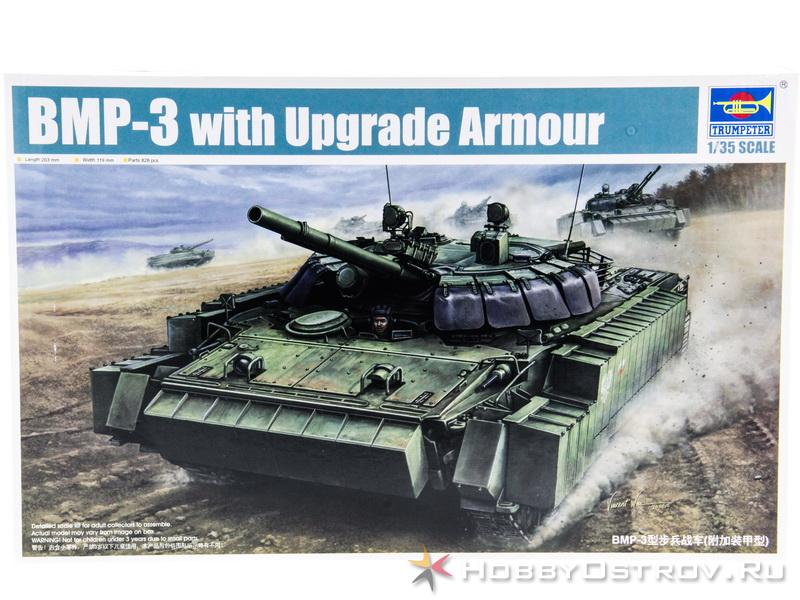 Сборная пластиковая модель боевой машины пехоты БМП-3 с дополнительной броней в масштабе 1:35.