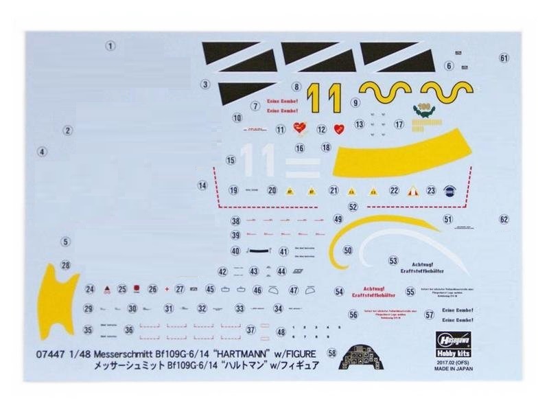 Сборная модель Hasegawa Самолет Messerschmitt Bf109G-6/14 "HARTMANN" w/FIGURE, шт, 1/48