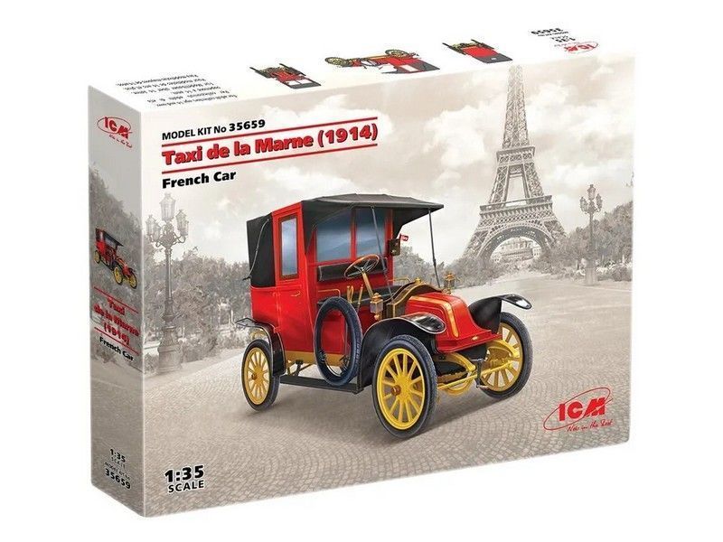 Рено AG-1, обычное парижское такси первого десятилетия XX века, сыграло значительную роль в крупном эпизоде Первой мировой войны - в сентябре 1914 года, в битве англо-французских и германских войск на реке Марна. Было мобилизовано порядка 1300 экипажей для оперативного переброса 6000 французских солдат к месту сражения, что позволило выиграть время и помогло англо-французским войскам одержать верх. С того момента парижане называли своё такси не иначе, как "марнское такси" (фр. - "Renault Taxi de la Marne"). Renault AG-1 - легковой автомобиль переднемоторной, заднеприводной компоновки, в двудверном кузове "торпедо", выпускался с 1905 по 1910 годы. 1,2-литровый бензиновый двигатель мощностью 9 лошадиных сил позволял автомобилю развивать максимальную скорость до 65 км/ч. Детализированная ходовая часть, проработанный двигатель, воспроизведены органы управления, детализированный кузов. Детали из прозрачного пластика для остекления.