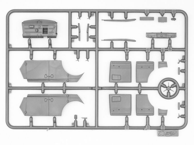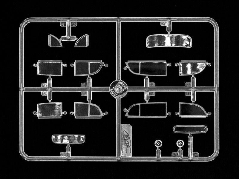 Высокодетализированная модель с конструктивными особенностями. Проработанный интерьер с сборными сиденьями, элементами управления и панелью приборов, внутренняя обшивка дверей выполнена отдельными деталями. Высокодетализированный сборный двигатель, проработанное подкапотное пространство, капот выполнен отдельными деталями. Детализированные мосты, подвеска, кардан, трансмиссия, выхлоп выполнен отдельной деталью. Покрышки из мягкого резиноподобного пластика с проработанным рисунком протектора. Детали из прозрачного пластика для выполненного отдельными деталями остекления салона, стёкол фар. Ручки стеклоподъёмников, внутренние и внешние ручки открывания дверей, зеркала заднего вида, включая салонное, дворники, запаска и другие подробности.
