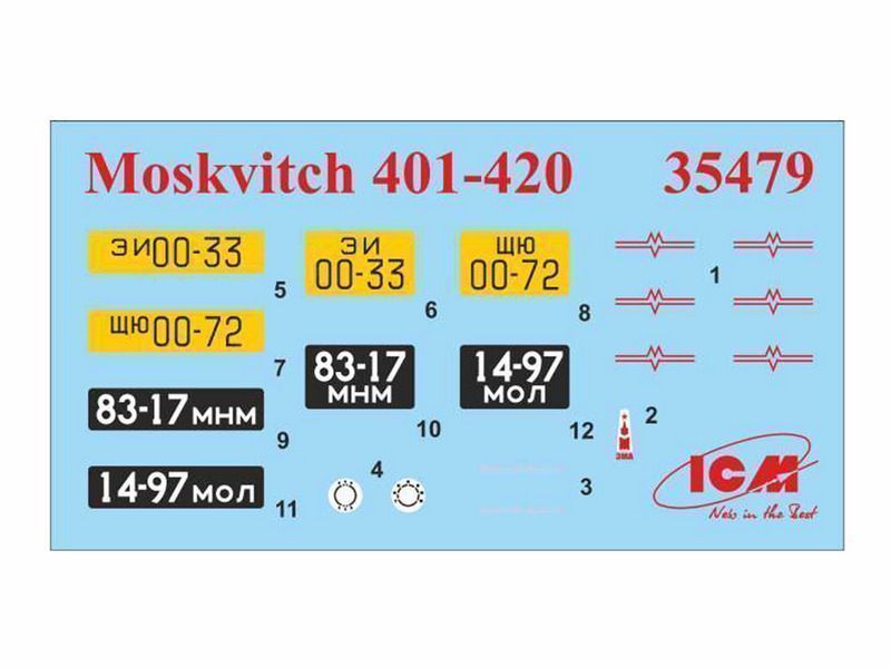 Сборная модель советского пассажирского автомобиля Москвич-401-420 седан в масштабе 1/35.