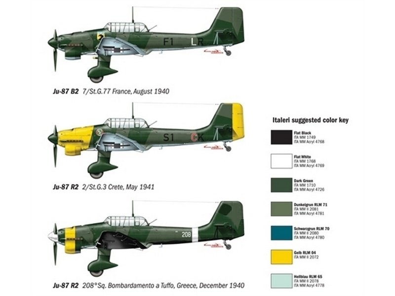 Сборная модель немецкого пикирующего бомбардировщика Ju-87 B2/R1 Stuka в масштабе 1:72 от ITALERI.