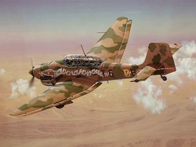 Юнкерс Ю-87 "Штука" — одномоторный двухместный (пилот и задний стрелок) пикирующий бомбардировщик и штурмовик времён Второй мировой войны. Отличительными чертами самолёта стали крыло типа "перевёрнутая чайка", фиксированное неубирающиеся шасси и рёв сирены при пикировании. Ju 87 можно увидеть во многих исторических военных фильмах — как олицетворение мощи Германии и символ немецких побед времён блицкрига 1939 - 1942 годов. В советских войсках имел прозвища "лаптёжник" (за неубирающиеся специфического вида шасси) и "певун" или "шарманщик" (за вой сирены, "иерихонской трубы" или "шарманки", во время пикирования).