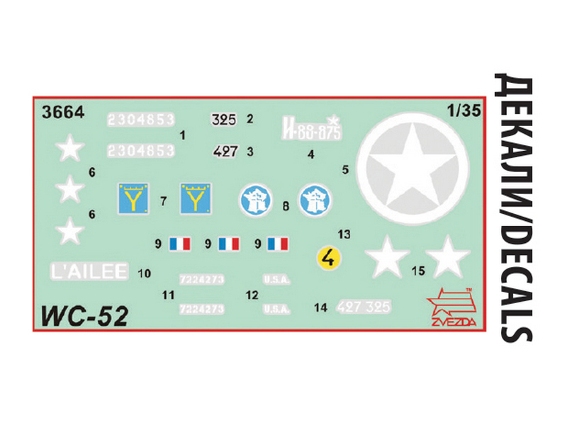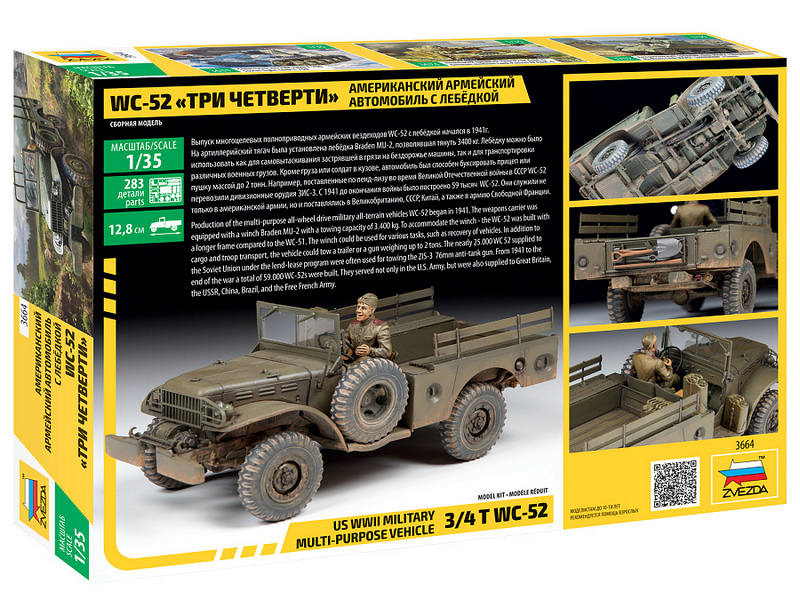 комплект пластиковых деталей для сборки одной модели американского армейского автомобиля WC-52 "Три четверти" с лебедкой