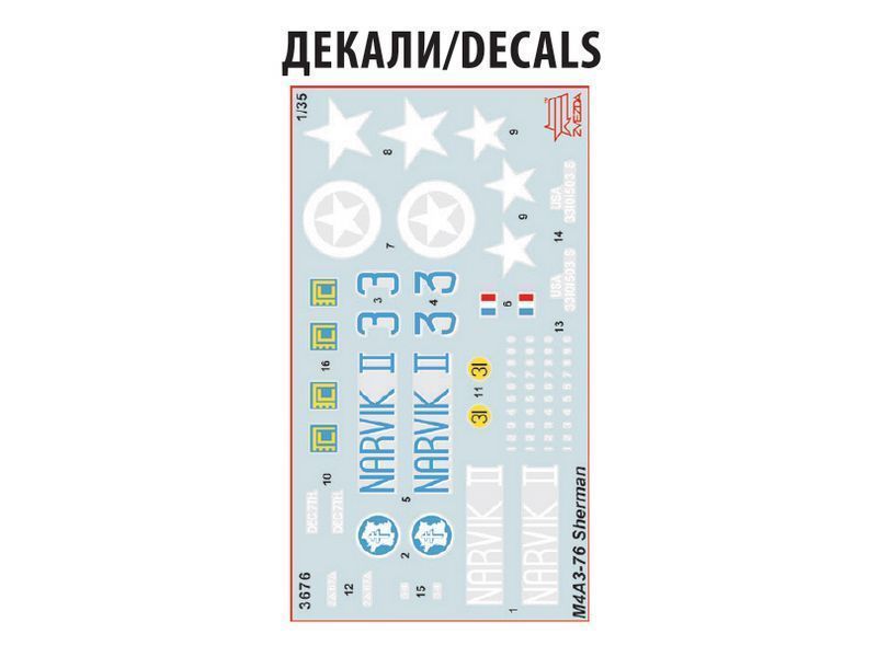 комплект пластиковых деталей для сборки одной модели Американского среднего танка М4А3 (76) W «ШЕРМАН»