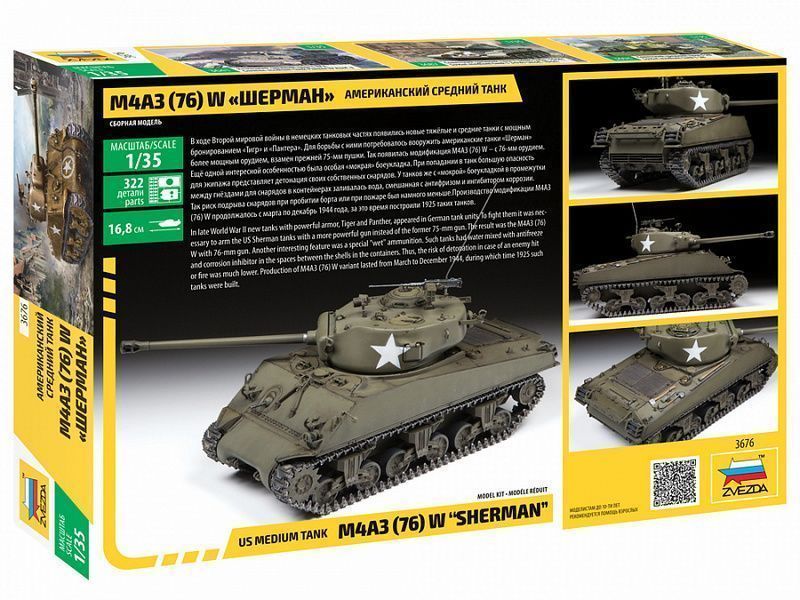 В ходе Второй мировой войны в немецких танковых частях появились новые тяжёлые и средние танки с мощным бронированием «Тигр» и «Пантера». Для борьбы с ними потребовалось вооружить американские танки «Шерман» более мощным орудием, взамен прежней 75-мм пушки. Так появилась модификация М4А3 (76) W – с 76-мм орудием. Ещё одной интересной особенностью была особая «мокрая» боеукладка. При попадании в танк большую опасность для экипажа представляет детонация своих собственных снарядов. У танков же с «мокрой» боеукладкой в промежутки между гнёздами для снарядов в контейнерах заливалась вода, смешанная с антифризом и ингибитором коррозии. Так риск подрыва снарядов при пробитии борта или при пожаре был намного меньше. Производство модификации М4А3 (76) W продолжалось с марта по декабрь 1944 года, за это время построили 1925 таких танков.