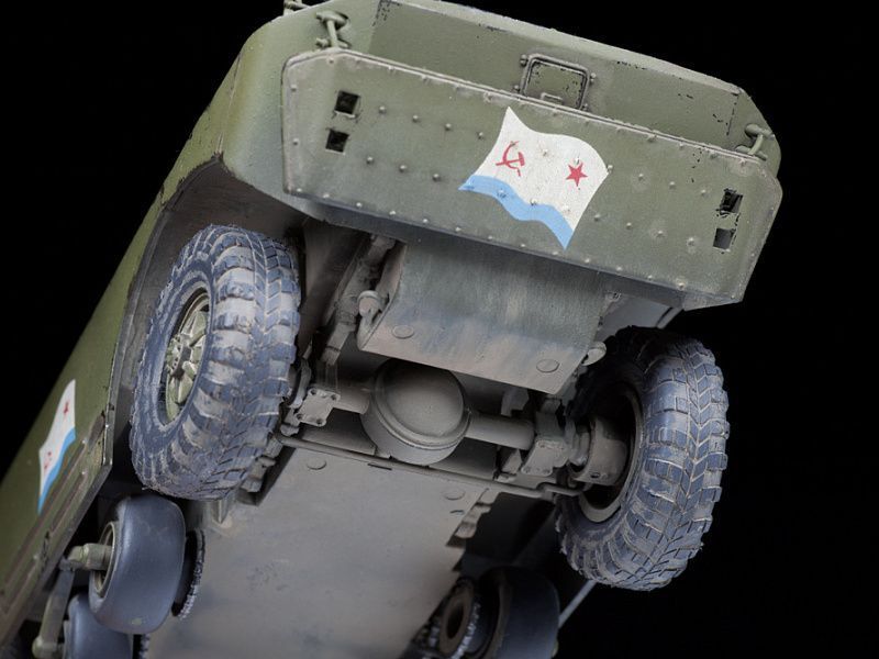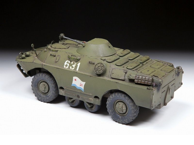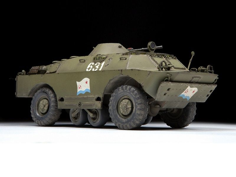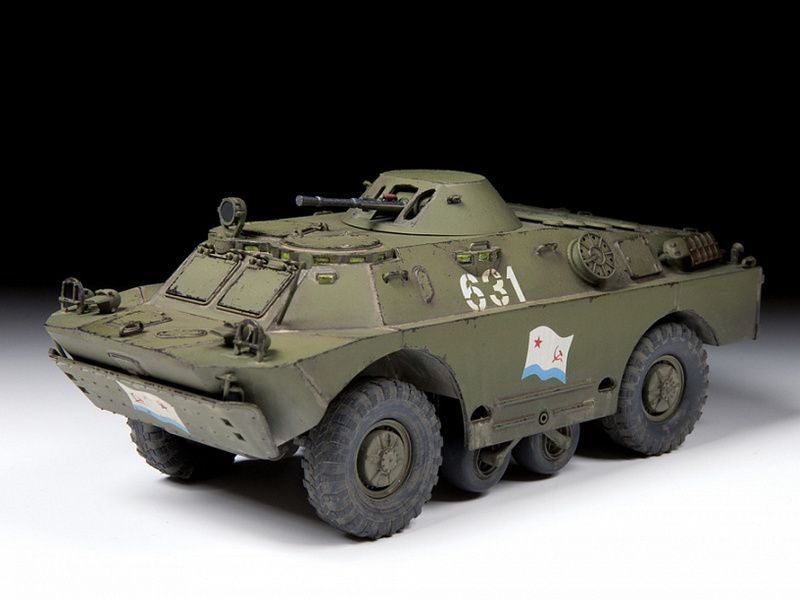 БРДМ-2 – это бронированная разведывательно-дозорная машина, была разработана в конструкторском бюро Горьковского автомобильного завода и серийно выпускалась в СССР с 1964 по 1989 год, а также по лицензии за границей: в Польше, Чехословакии и Югославии. Броня БРДМ защищает только от пуль и небольших осколков, зато машина имеет высочайшую проходимость, что крайне важно для «разведчика». Для преодоления рвов и траншей из-под корпуса в средней части выдвигаются небольшие дополнительные колёса, не дающие машине «сесть на брюхо». При этом по хорошей дороге БРДМ может мчаться со скоростью до 100 км/ч. Ещё машина умеет плавать – в корме корпуса установлен водомётный двигатель. БРДМ-2 вооружена установленными во вращающейся башне крупнокалиберным 14,5-мм пулемётом КПВТ и спаренным с ним 7,62-мм пулемётом Калашникова ПКТ. Бронебойно-зажигательные пули КПВТ позволяют экипажу уничтожать бронетранспортёры и другую легкобронированную технику противника, а ПКТ предназначен для борьбы с вражеской пехотой. За время выпуска в конструкцию машины вносились различные изменения.