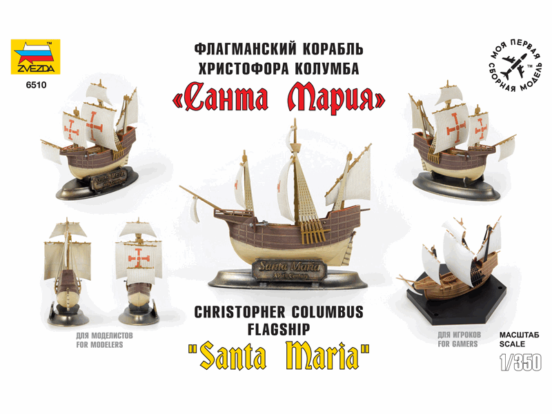 Сборная модель ZVEZDA Флагманский корабль Христофора Колумба "Санта-Мария", 1/350