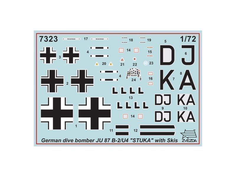 комплект пластиковых деталей для сборки одной модели немецкого бомбардировщика Юнкерс Ju-87B2