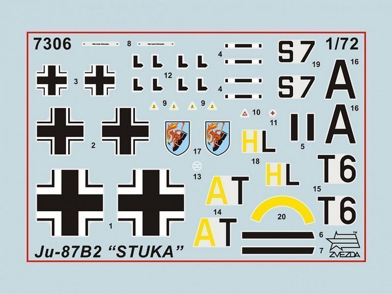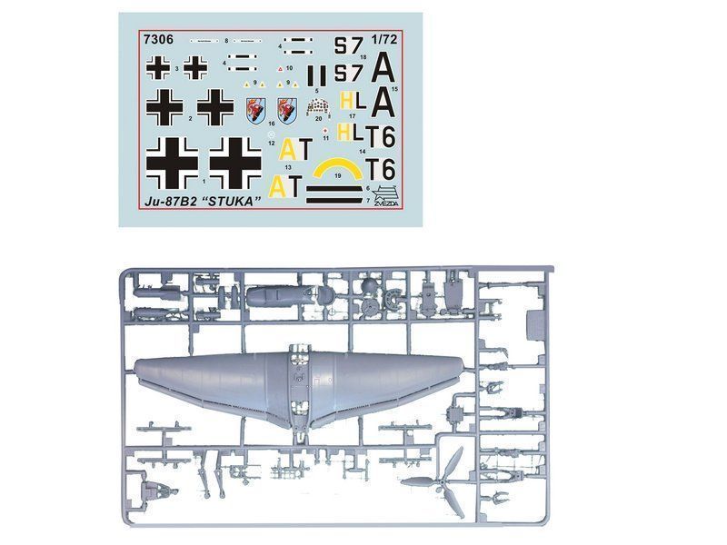 комплект пластиковых деталей для сборки одной модели немецкого бомбардировщика Юнкерс Ju-87B2