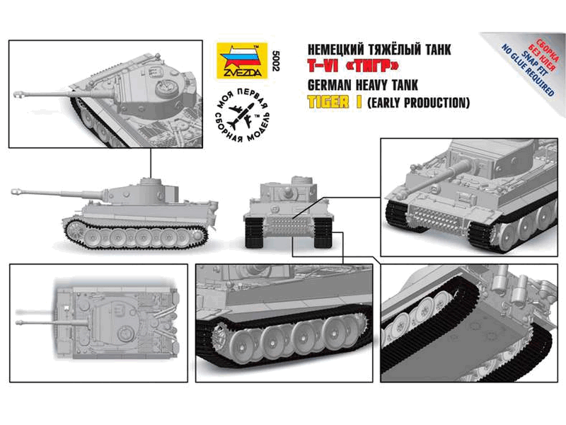 Сборная модель ZVEZDA Немецкий танк Т-VI "Тигр" (сборка без клея), 1/72