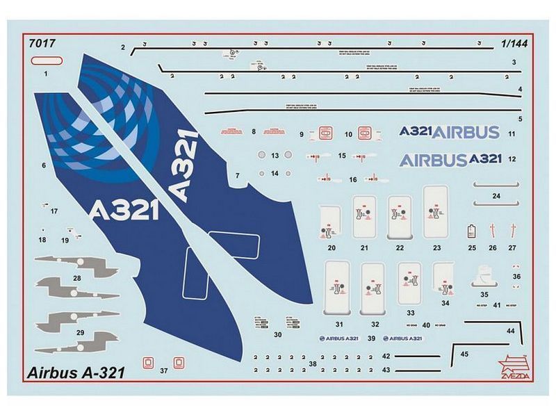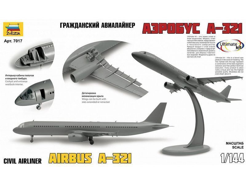 Сборная модель ZVEZDA Пассажирский авиалайнер Аэробус А-321, 1/144