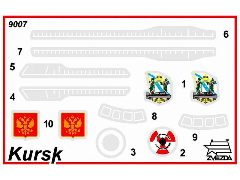 Основное вооружение: - 24 пусковых установки со сверхзвуковыми крылатыми ракетами ЗМ-45 комплекса П-700 «Гранит» (ракеты могут нести как фугасный (700 кг) так и ядерный боезаряд (500кг)); - шесть носовых торпедных аппаратов, из них два 650 мм и четыре 533 мм (общий запас торпед -18). Наибольшая длина -154,8 м. Ширина -18 м. Высота (от киля до верха ограждения рубки) -18,3 м (высота б-ти этажного дома). Экипаж - 130 человек. Трагически погиб 12 августа 2000 года.