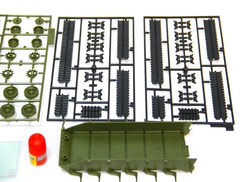 Проработанная ходовая часть, наборные пластиковые гусеницы с прямыми участками, выполненными единой деталью.