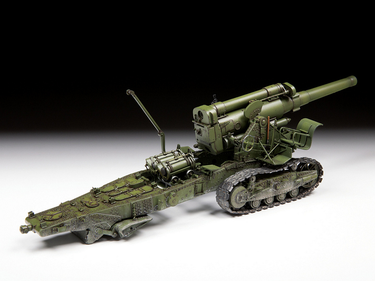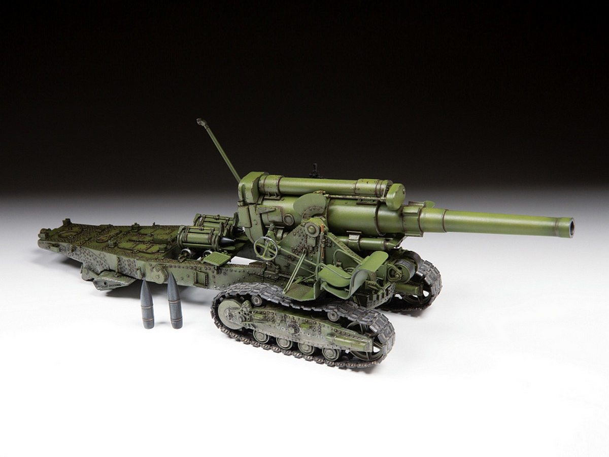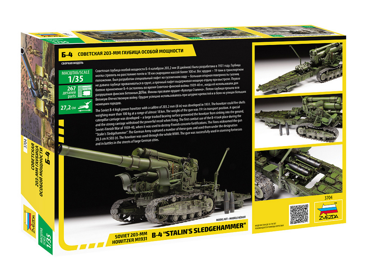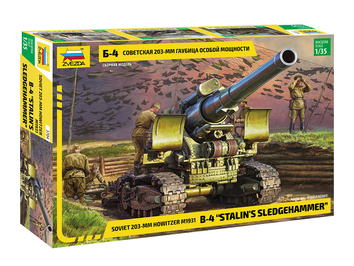 Советская гаубица особой мощности Б-4 калибром 203,2 мм (8 дюймов) была разработана в 1931 году. Гаубица могла стрелять на расстояние почти в 18 км снарядами массой более 100 кг. Вес орудия – 19 тонн в транспортном положении. Был разработан специальный лафет на гусеничном ходу – большая опорная поверхность гусениц не давала гаубице проваливаться в грунт, а прочный лафет выдерживал мощную отдачу при выстреле. Первое боевое применение Б-4 состоялось во время Советско-финской войны 1939-40 гг., когда её использовали для разрушения финских бетонных ДОТов. Финны прозвали орудие «Кувалда Сталина». Потом гаубица прошла всю Великую Отечественную войну. Орудие успешно использовалось при штурме крепостей и в боях на улицах больших немецких городов.