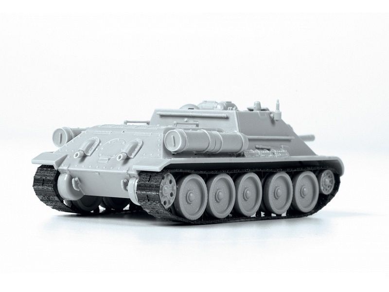 Модель СУ-122 выполнена по технологии «сборки без клея» в масштабе 1/72. Однако, для достижения высокого уровня детализации, ряд дополнительных элементов можно посадить на клей. Краски в комплект не входят.