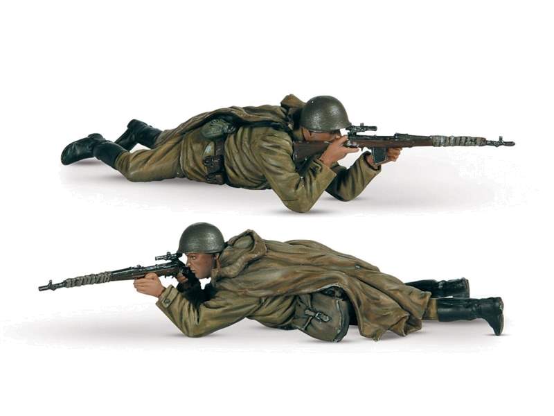 В набор входят фигурки четырех советских снайперов, среди которых есть девушка снайпер. Вооружение снайперов состоит из снайперских винтовок Мосина, винтовки СВТ-40 и пистолета пулемета ППШ-41.