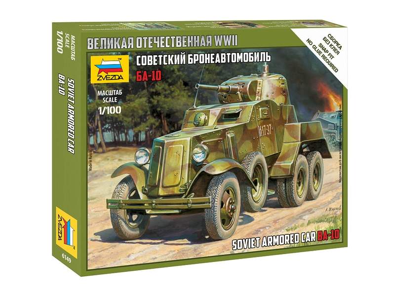 В игре БА-10 по стоимости примерно равен лёгкому танку. По боевой мощи равен лёгким советским танкам. При этом он может вести разведку так как более мобилен. Из минусов всё те же болезни устаревших танков начала Войны – слабая броня. Набор деталей из пластмассы для сборки одной модели неокрашенного бронеавтомобиля.