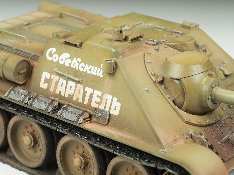 СУ-85 – средняя по массе советская самоходно-артиллерийская установка, относящаяся к классу истребителей танков. СУ-85 активно и успешно использовались с сентября 1943 года до окончания Великой Отечественной войны. Машины выпускались на Уральском заводе тяжёлого машиностроения (Уралмаш) с августа 1943 по июль 1944 года, всего было построено 2337 самоходок. 85-мм пушка Д-5С позволяла СУ-85 эффективно бороться со средними танками противника на дистанциях более километра, а на меньших дистанциях пробивать лобовую броню тяжёлых танков.
