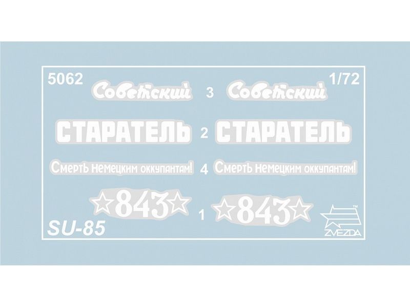 Су-85 с бортовым номером 843 и надписью «Смерть немецким оккупантам» из 1047-го Калинковичского самоходно-артиллерийского полка 1-го Прибалтийского фронта. 1944 год;