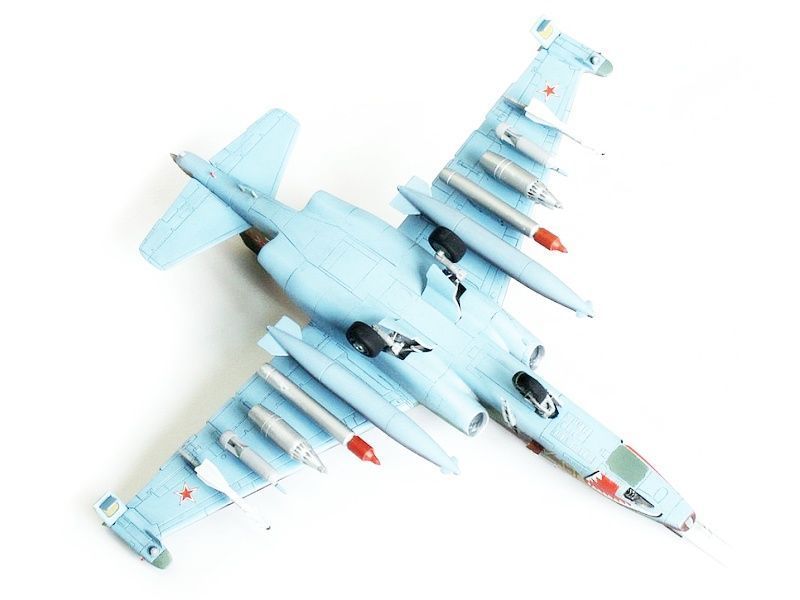 Первый полет самолета, получившего обозначение Су-25, состоялся в феврале 1975 года. На десяти узлах внешней подвески под крыльями Су-25 может нести до 4,4 тонны боевой нагрузки, включающей в себя бомбы, блоки неуправляемых ракет, ракеты класса «воздух-поверхность» с лазерной системой наведения, контейнеры с пушками.