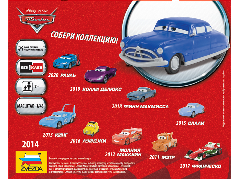 комплект пластиковых деталей для сборки модели Док Хадсон "Тачки Дисней"