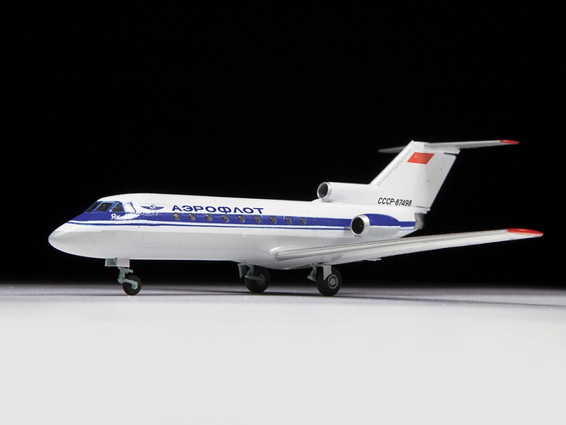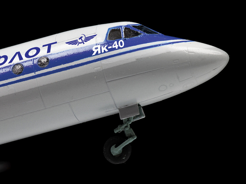 Як-40 – первый в мире трёхдвигательный турбореактивный пассажирский самолёт для местных авиалиний протяжённостью до 1500 км. Самолёт разработан в ОКБ Яковлева в 1964 году. Первый полёт состоялся 21 октября 1966 года. Крейсерская скорость – 510 км/ч. Як-40 стал первым самолётом производства СССР, получившим сертификат лётной годности в странах Западной Европы. Производство Як-40 продолжалось с 1966 по 1981 гг., всего было выпущено 1012 самолётов, из которых 125 поставлено на экспорт в 18 стран мира.