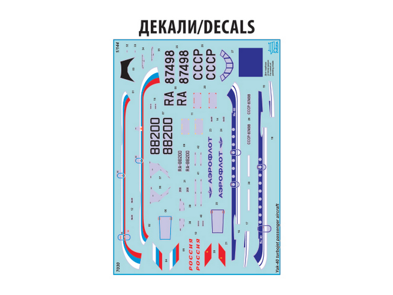 комплект пластиковых деталей для сборки модели самолета Як-40