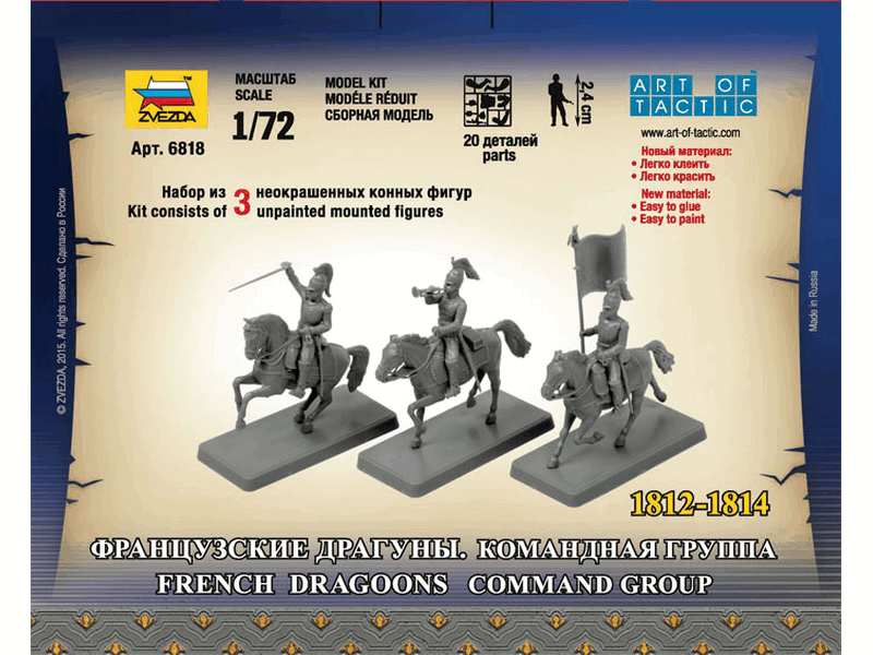 Комплект пластиковых деталей для сборки 3 неокрашенных фигур на лошадях.