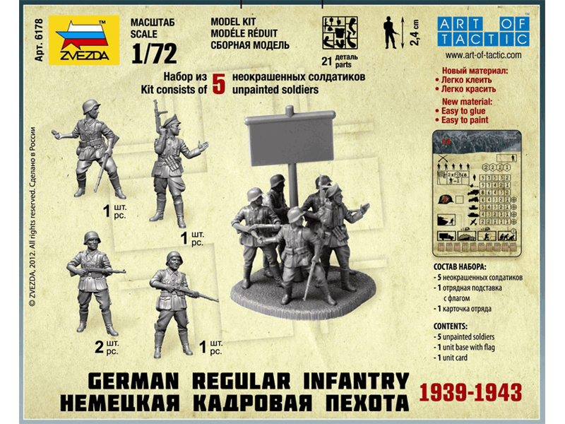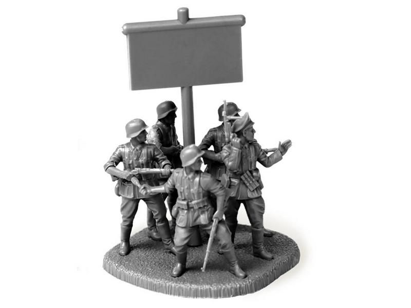Комплект пластиковых деталей для сборки 5 неокрашенных фигур в разных позах.