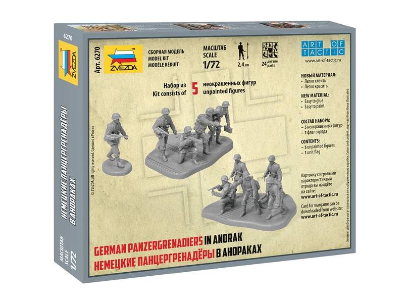 комплект пластиковых деталей для сборки 5 фигурок немецких панцергренадеров