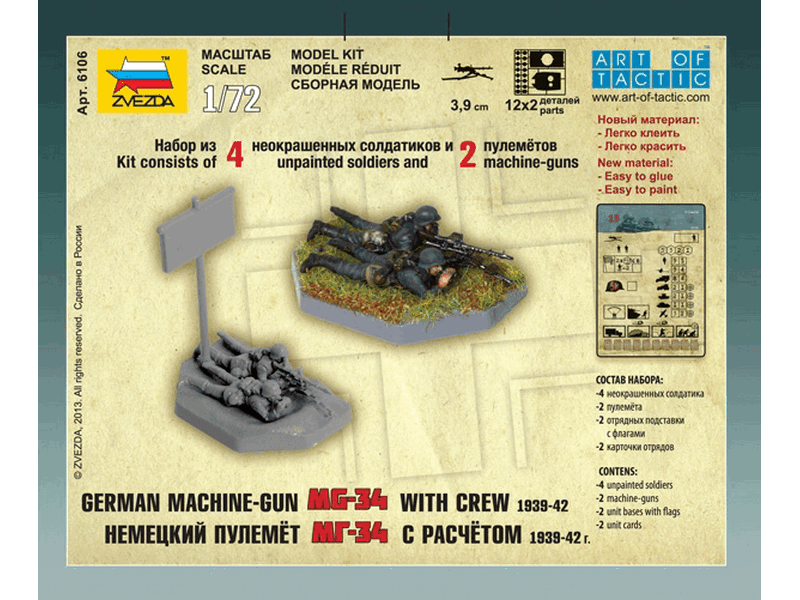 комплект пластиковых деталей для сборки 4 неокрашенных фигур и 2 пулеметов