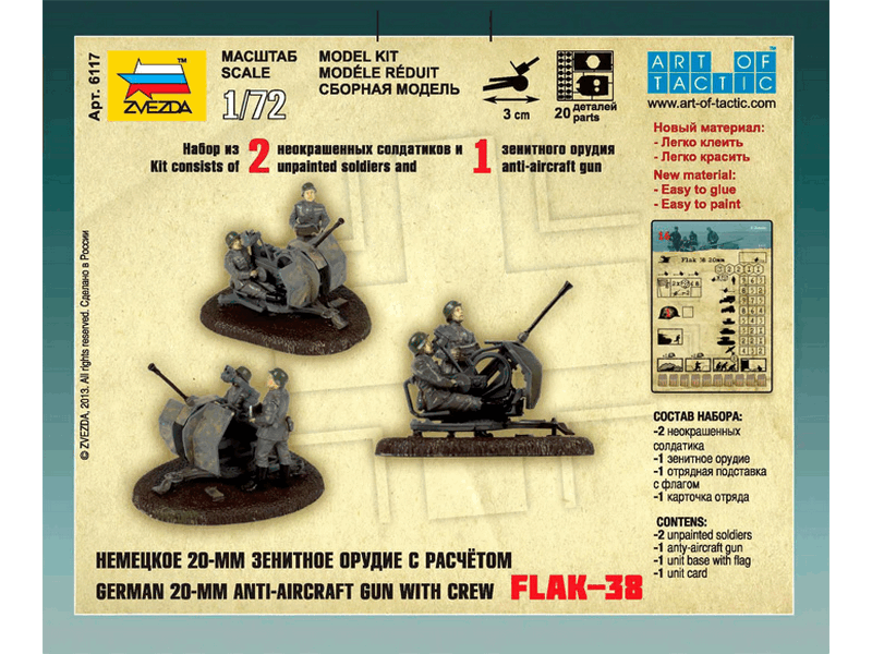 комплект пластиковых деталей для сборки 2-х неокрашенных фигур и 1 зенитного орудия