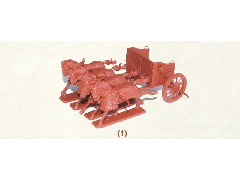 Сборная пластиковая модель персидской колесницы и кавалерии V-IV вв. до н.э. в масштабе 1/72.Фигурки собираются при помощи специального клея. Солдатики не раскрашены!