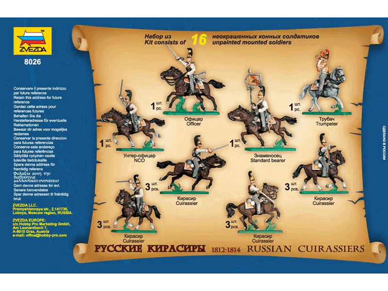 комплект пластиковых деталей для сборки 16 неокрашенных конных фигур