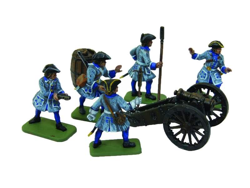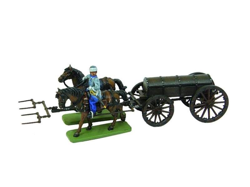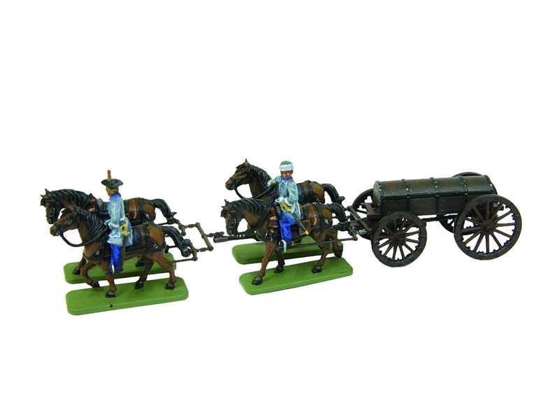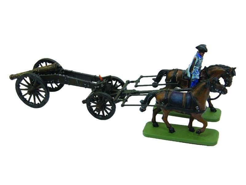 комплект пластиковых деталей для сборки 5 неокрашенных пушек, телеги, 3 конных и 32 пеших фигур