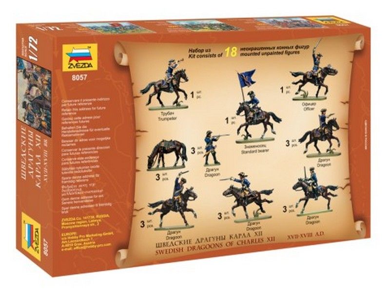 Сборные солдатики ZVEZDA Шведские драгуны Карла XII, 1/72