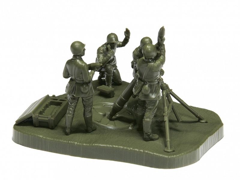 комплект пластиковых деталей для сборки 4 неокрашенных фигур и 1 миномета