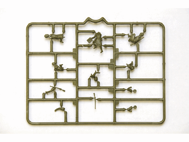 Комплект пластиковых деталей для сборки 4 неокрашенных фигур и миномёта.