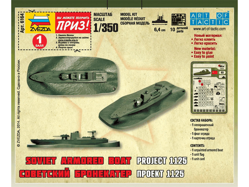 Сборные солдатики ZVEZDA Советский бронекатер Проект 1125, 1/350