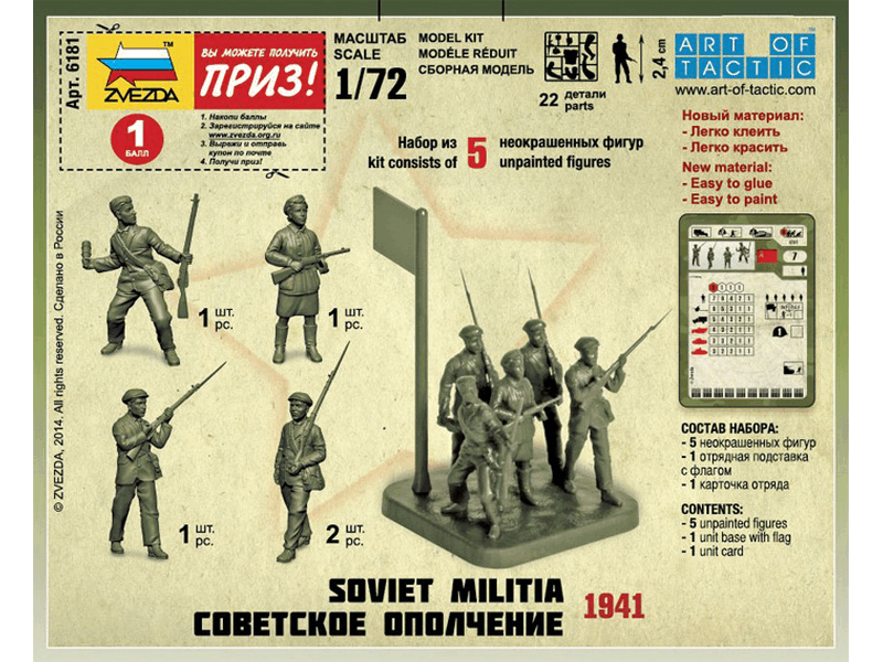 Комплект пластиковых деталей для сборки 5 неокрашенных фигур в разных позах.