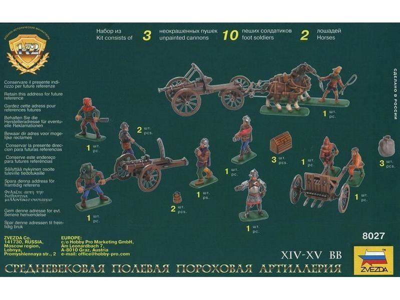 Сборные солдатики ZVEZDA Средневековая полевая пороховая артиллерия, 1/72