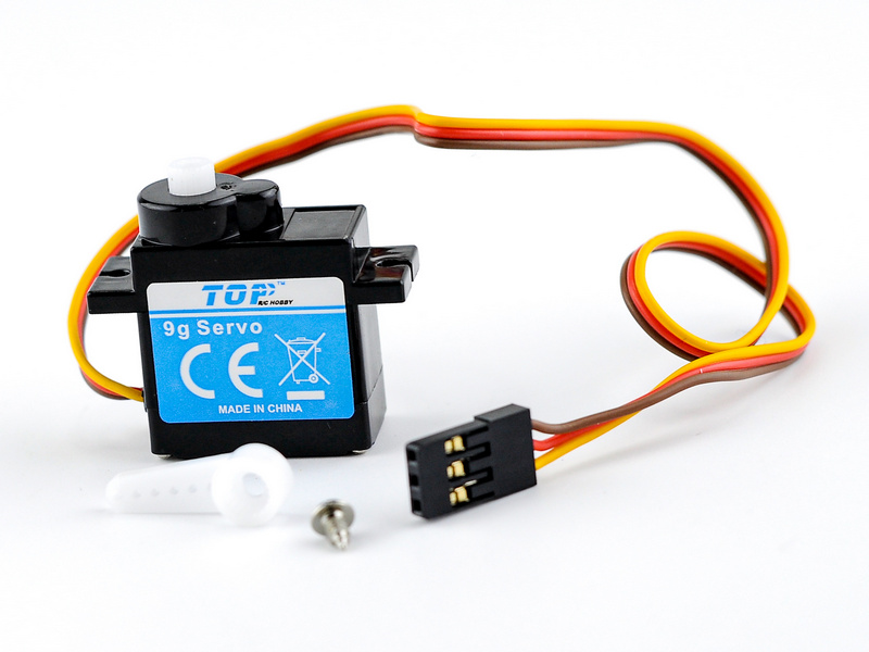 Сервомашинка с усилием 9г для радиоуправляемого самолета Top RC Cessna 182 400 Class, A1 Sky Raider, FW190. Устанавливается на закрылки.В комплекте: