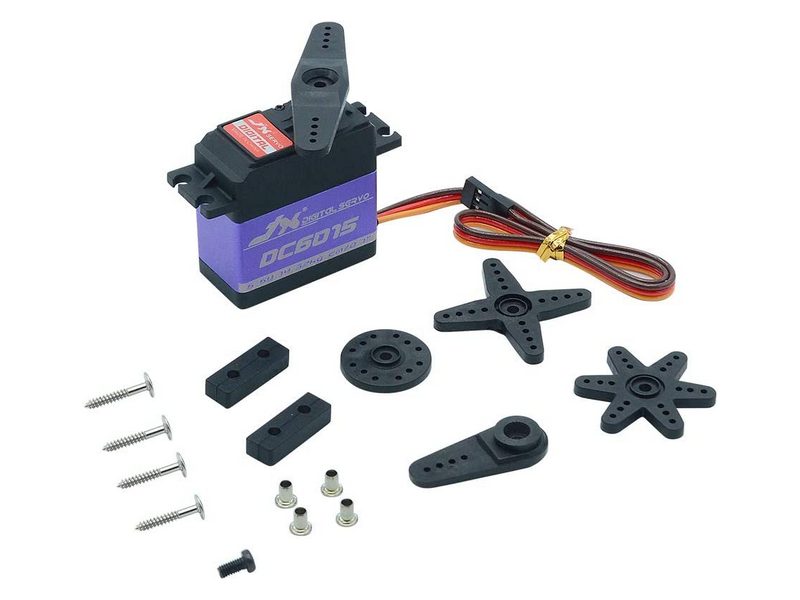 Мощная цифровая сервомашинка JX DC6015 с металлическим редуктором и алюминиевой центральной частью корпуса для лучшего охлаждения.Высококачественный цифровой сервопривод.