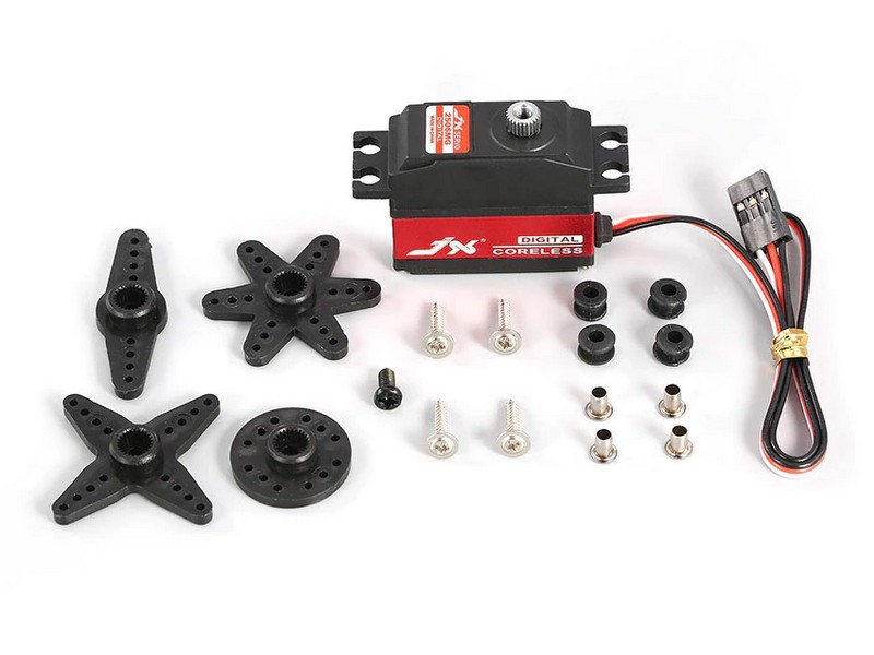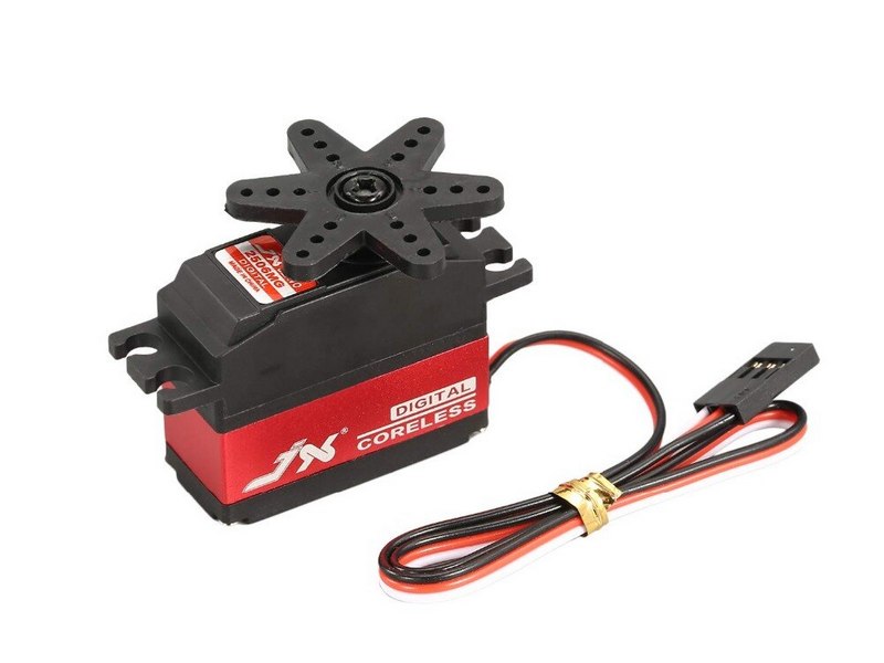 Цифровая сервомашинка JX PDI-2506MG с металлическим редуктором и алюминиевой центральной частью корпуса для лучшего охлаждения.Высокопроизводительный программируемый цифровой сервоприво…