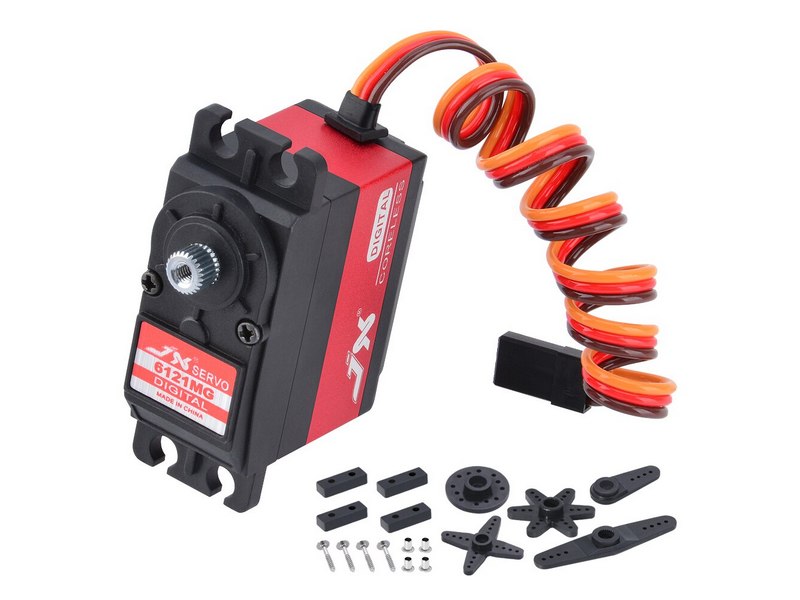 Цифровая сервомашинка стандартного размера JX PDI-6121MG с металлическим редуктором и алюминиевой центральной частью корпуса для лучшего охлаждения.Высокопроизводительный цифровой стандар…