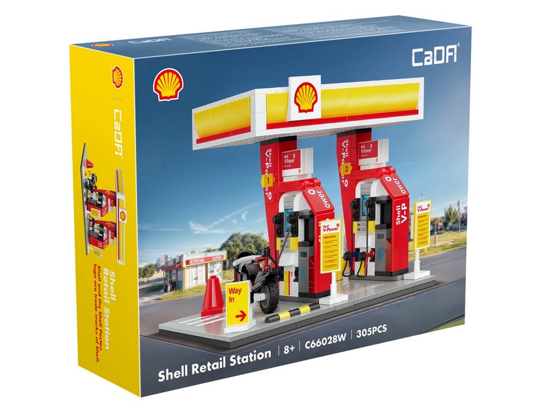 Конструктор от CADA для постройки Автозаправочной станции Shell из 305 деталей. CaDA Shell Retail Station является официально лицензированным продуктом. Воспроизводит наиболее распространенную схему расположения розничных станций Shell.