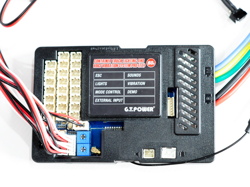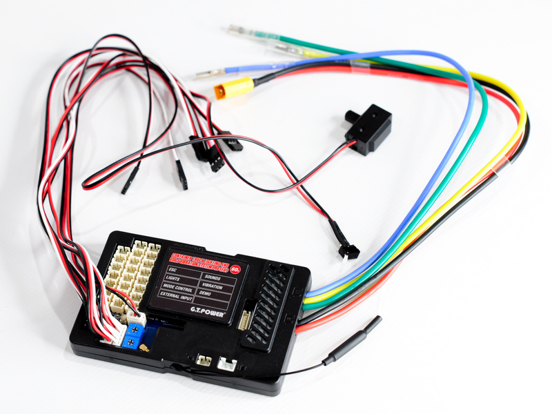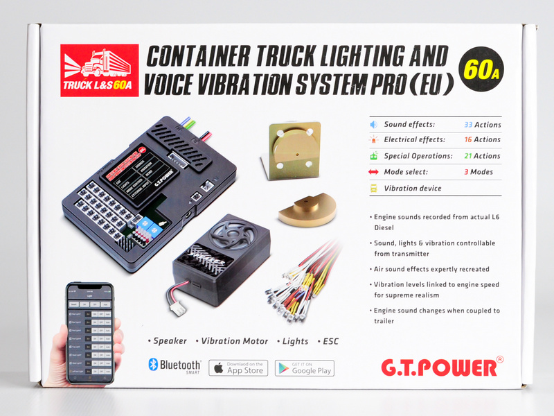 Система освещения PRO 60A G.T.Power со звуковым и вибрационным модулем для радиоуправляемых грузовиков (Европа). Поддержка функции S-BUS с помощью приложения для управления телефоном. Функция поддержки щеточного двигателя и бесщеточного двигателя. Встроенный ESC, звуковые, вибрационные и световые эффекты.